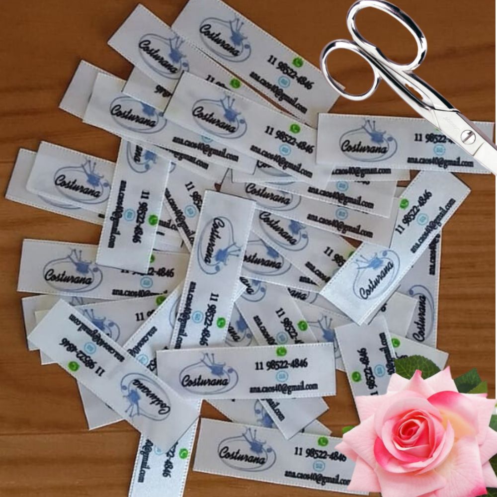 # Etiquetas Personalizadas de Tecido Cetim ou Gorgurão para Roupas, Laços, Crochê, Uniformes.