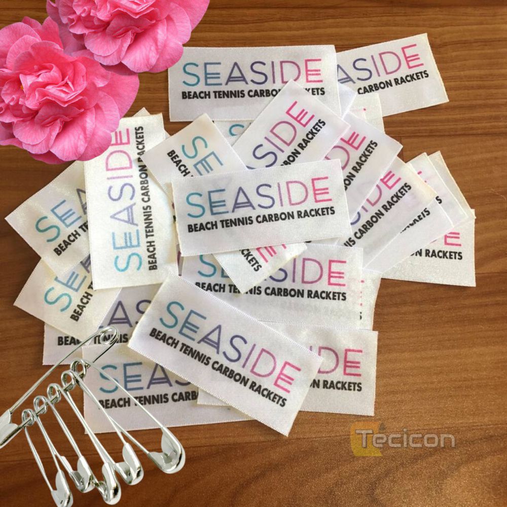 # Etiquetas Personalizadas de Tecido Cetim ou Gorgurão para Roupas, Laços, Crochê, Uniformes.